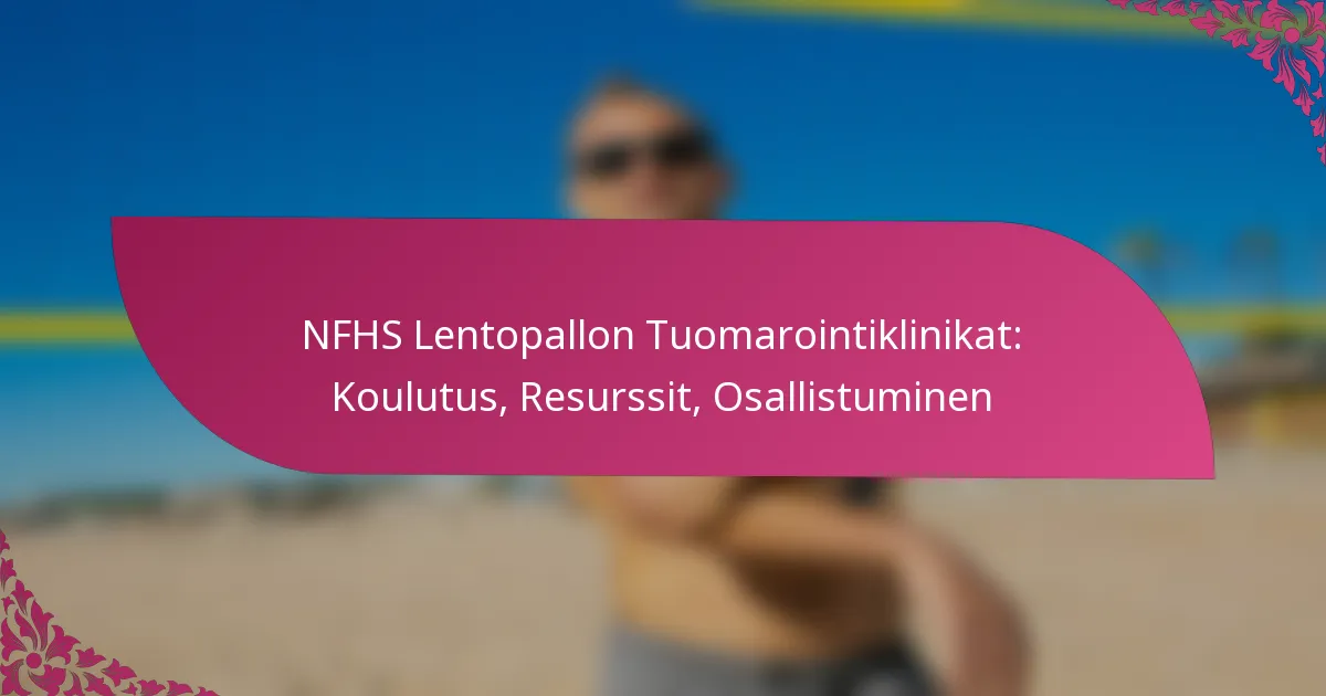 NFHS:n lentopallon tuomarointiklinikat tarjoavat olennaista koulutusta tuomareille, keskittyen sääntöihin, mekaniikkaan ja parhaisiin käytäntöihin, jotka ovat tarpeen tehokkaassa tuomaroinnissa lentopallon kilpailuissa. Nämä ohjelmat yhdistävät teoreettisen tiedon käytännön soveltamiseen, varmistaen, että osallistujat ovat hyvin varustautuneita hallitsemaan otteluita luottavaisesti. Lisäksi erilaiset resurssit, mukaan lukien oppaat ja verkkokurssit, tukevat jatkuvaa oppimista ja taitojen kehittämistä tuomareille.
