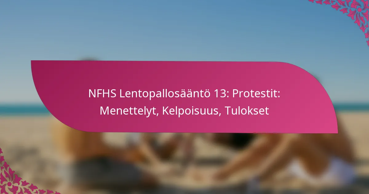 NFHS:n lentopallosääntö 13 määrittelee menettelyt protestien jättämiseksi, jotka liittyvät kelpoisuuteen ja pelikäyttäytymiseen. Tämä sääntö on olennaista reiluuden ja eheyden ylläpitämiseksi urheilussa, jolloin joukkueet voivat kyseenalaistaa päätöksiä, jotka voivat vaikuttaa ottelun lopputulokseen.