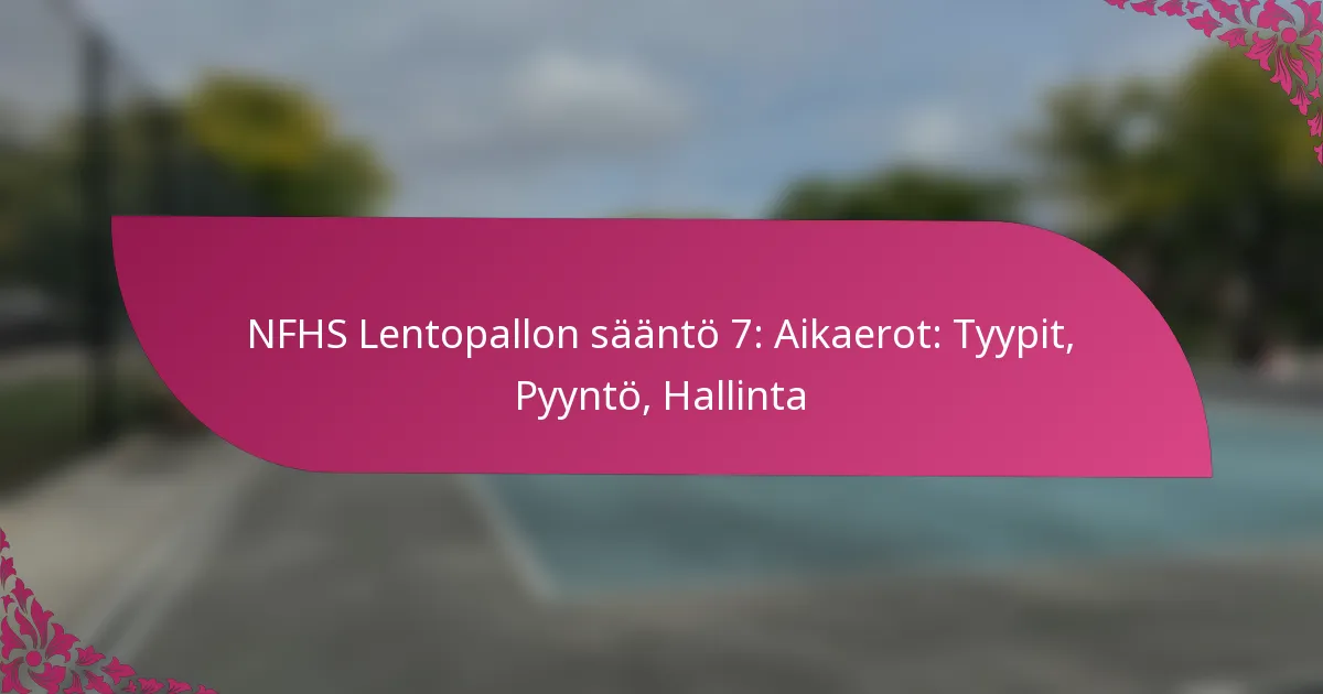 NFHS:n sääntö 7 tarjoaa kattavat ohjeet aikakatkosten hallintaan lentopallossa, mukaan lukien niiden tyypit sekä pelaajien ja viranomaisten vastuudet. Aikakatkokset ovat olennaisia joukkueiden uudelleenryhmittelyyn, strategian kehittämiseen ja pelaajien väsymyksen käsittelyyn. Aikakatkoksia on kolme päätyyppiä: joukkue-, viranomais- ja loukkaantumisaikakatkoksia, joilla kaikilla on erityiset säännöt, jotka vaikuttavat pelin dynamiikkaan. Menettelyjen tunteminen aikakatkosten pyytämiseksi ja hallitsemiseksi on ratkaisevan tärkeää tehokkaan pelin kannalta.