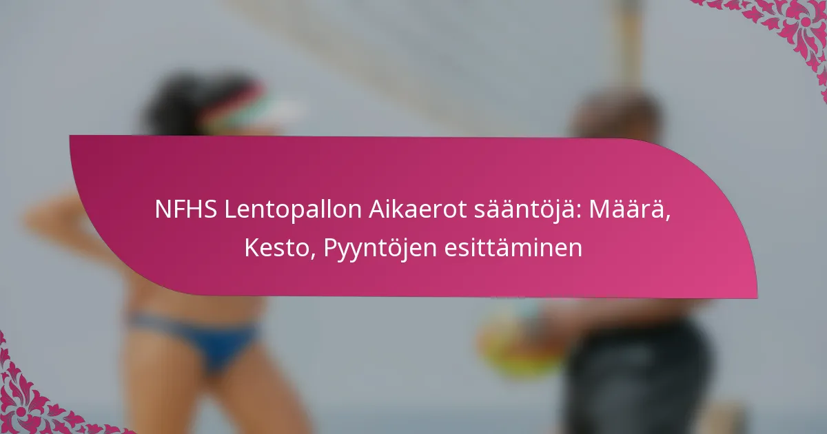 NFHS:n lentopallon aikakatkaisusäännöt määrittelevät aikakatkaisujen määrän ja keston, joita joukkueet voivat käyttää ottelun aikana. Jokaiselle joukkueelle sallitaan kaksi aikakatkaisua ottelua kohden, kunkin kesto on 60 sekuntia, mikä mahdollistaa strategiset keskustelut ja mukautukset suorituskyvyn parantamiseksi kentällä.