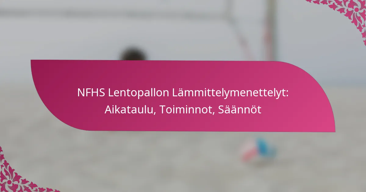 NFHS:n lentopallon lämmittelymenettelyt määrittelevät aikarajat ja aktiviteetit, jotka ovat tarpeen joukkueiden tehokkaaseen valmistautumiseen ennen ottelua. Nämä ohjeet varmistavat, että pelaajat ovat fyysisesti ja henkisesti valmiita, vähentäen loukkaantumisriskiä ja parantaen suoritusta.